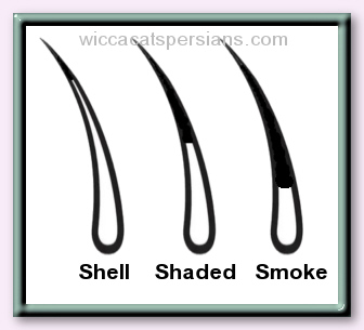 The hairs on smokes are tipped with color and the depth of the tipping distinguishes a cat as either Shell, Shaded, or Smoke. A Shell has the lightest tipping and the next darkest color is the Shaded group. The darkest and most common are the Smokes, with most of the hair shaft being pigmented.
